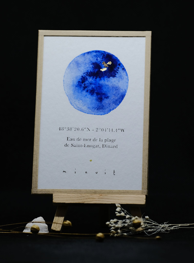 Aquarelle à l'eau de mer réalisée avec l'eau récoltée à la plage de Saint-Enogat, à Dinard (35).